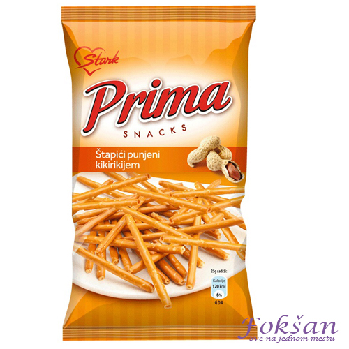 Prima kikiriki štapići 45g – Hrskava grickalica sa bogatim punjenjem.