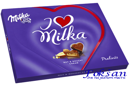 Milka – praline od mlečne čokolade, punjene alpskim mlekom i bademovim kremom, sa komadićima lešnika.