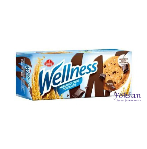Klasičan, hrskav Wellness keks obogaćen je ukusnim komadićima čokolade koji će zadovoljiti vašu potrebu za slatkim, a da pritom ne narušite svoju ishranu.