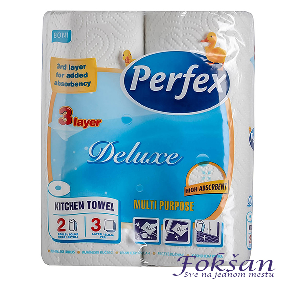 Boni Perfex 3-slojni ubrus, pakovanje 2/1, nudi izuzetnu moć upijanja i čvrstinu za sve vaše potrebe čišćenja.