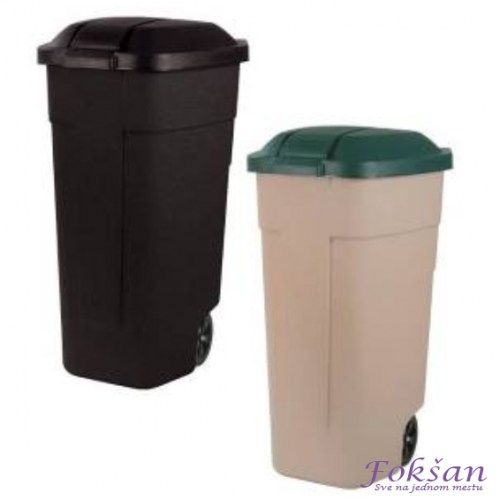Plastične kante za dvorište. Dvorišna kanta ima poklopac sa šarkama i dva točka.