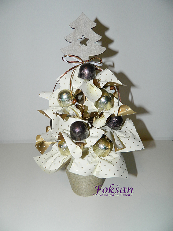 Ručno rađeni, handmade poklon aranžman – Jelka sa Štark bombonama.