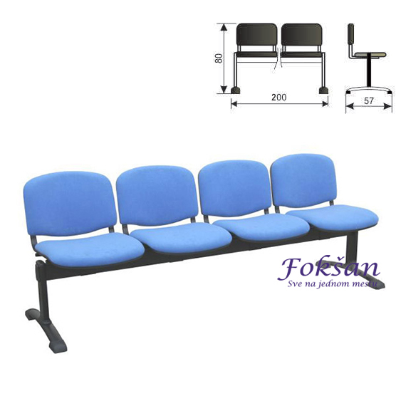 Klupa ima tapacirana sedišta na metalnoj konstrukciji.
