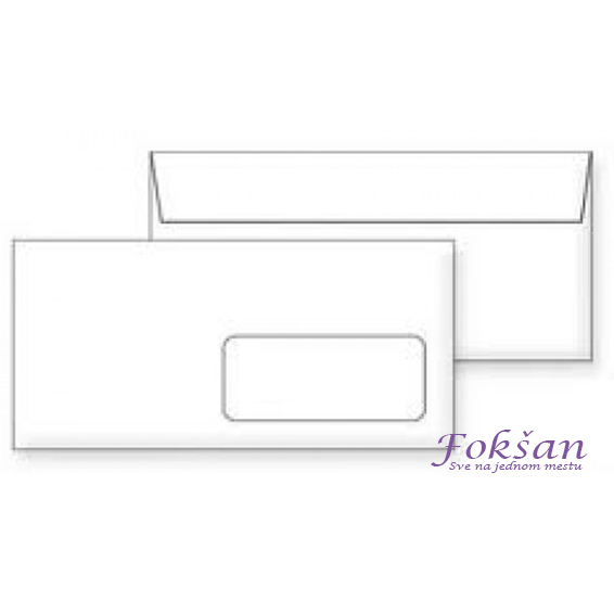 Ameriken (DL) koverta bela sa DESNIM prozorom je standardan izbor za slanje faktura, promotivnih materijala i službenih pisama.