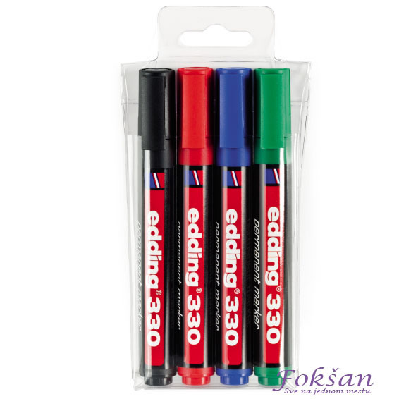 Flomaster Edding 330 sa kosim vrhom. Debljina traga: 1,5 – 3mm