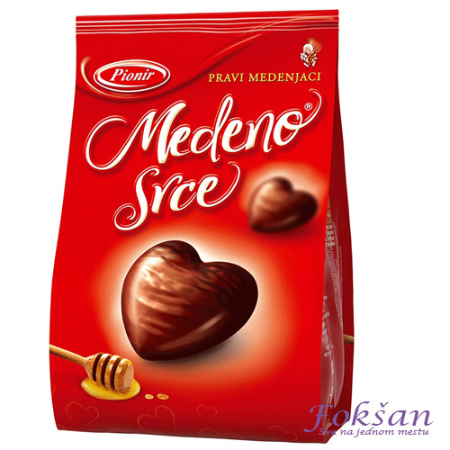 Medeno Srce (150g) je medeni biskvit sa voćnim punjenjem i bogatim čokoladnim prelivom.