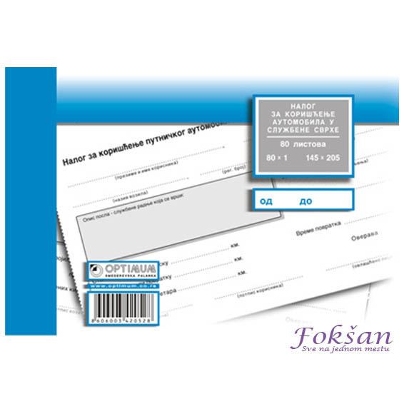 Putni nalog za korišćenje automobila u službene svrhe A5Format 145205