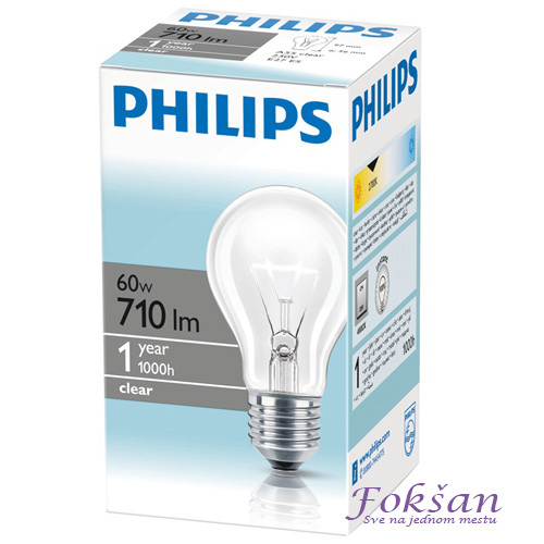 Standardna bistra sijalica idealna za indirektno osvetljenje u zatvorenim svetiljkama. Jačina 60W E27
