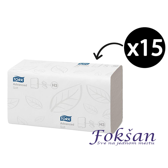 Tork H3 ručni papirni, dvoslojni ubrus u listićima bele boje. Jednostavan za upotrebu, pogodan za sve vrste javnih prostorija.
