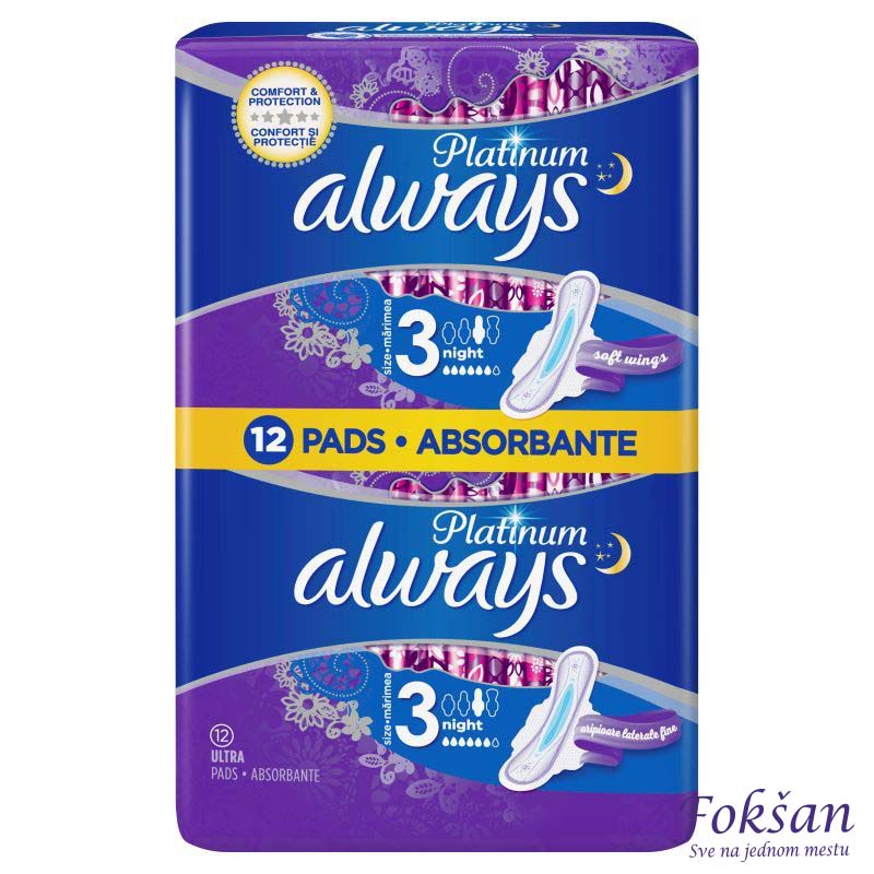 Always Platinum higijenski ulošci sa krilcima. Pakovanje 12/1